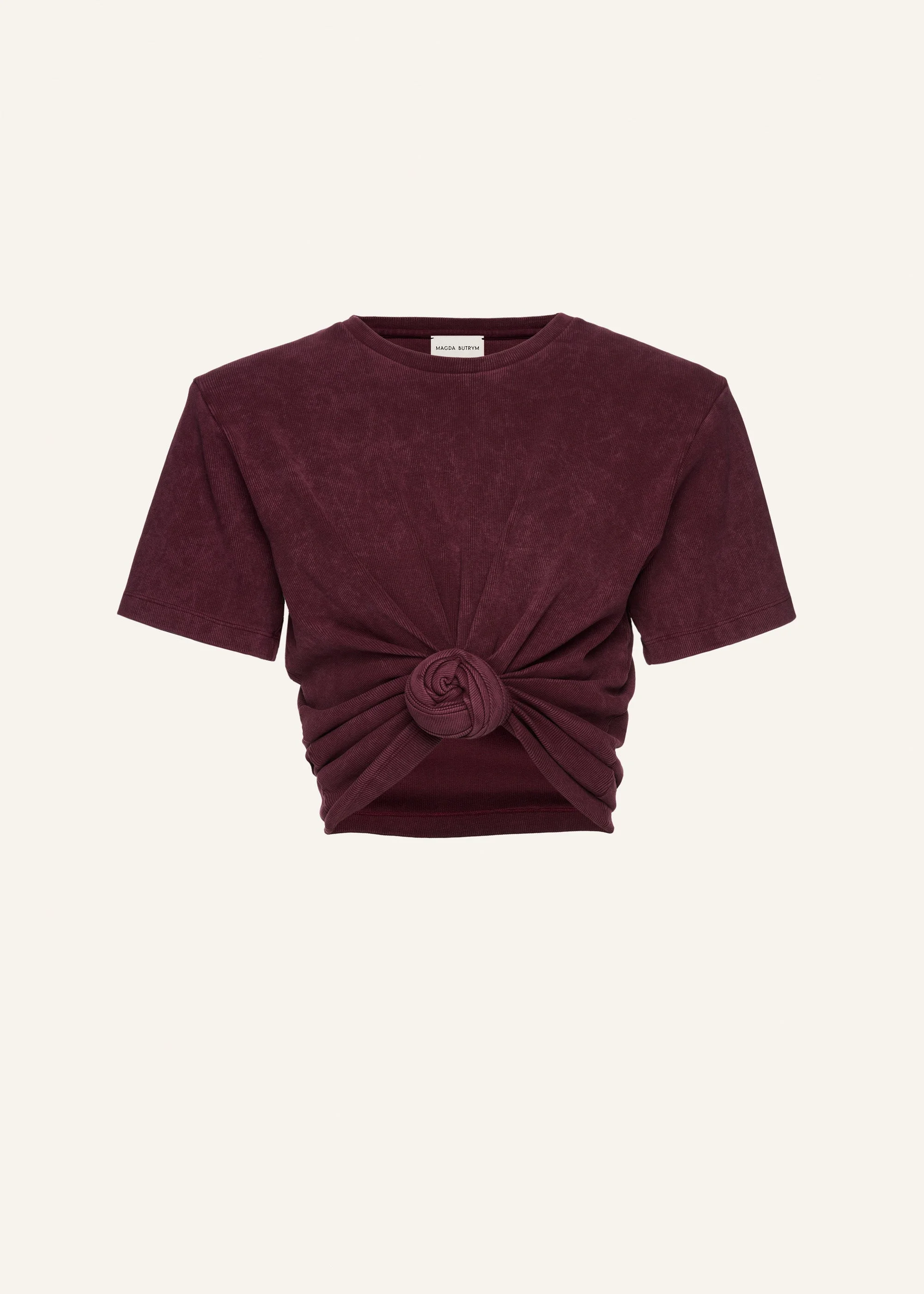 Magda's classic ribbed t-shirt with a knotted detail at the front and detachable shoulder pads. Details ID: 344725 Shell 95% Cotton 5% Elastane Sizing This piece fits true to size. We recommend you get your regular size. Model is 180 cm and is wearing a size 34.