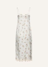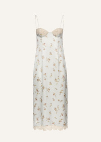 A silk slip dress with an east fit, this midi dress has handmade lace crochet trim detailing at the skirt as well as across a bustier bra. Details ID: 166725 Shell 100% Silk. Lining 100% Silk. Sizing This piece fits true to size. We recommend you get your regular size. Model is 180 cm and is wearing a size 34.