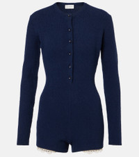 Lace-trimmed knitted cotton-blend romper