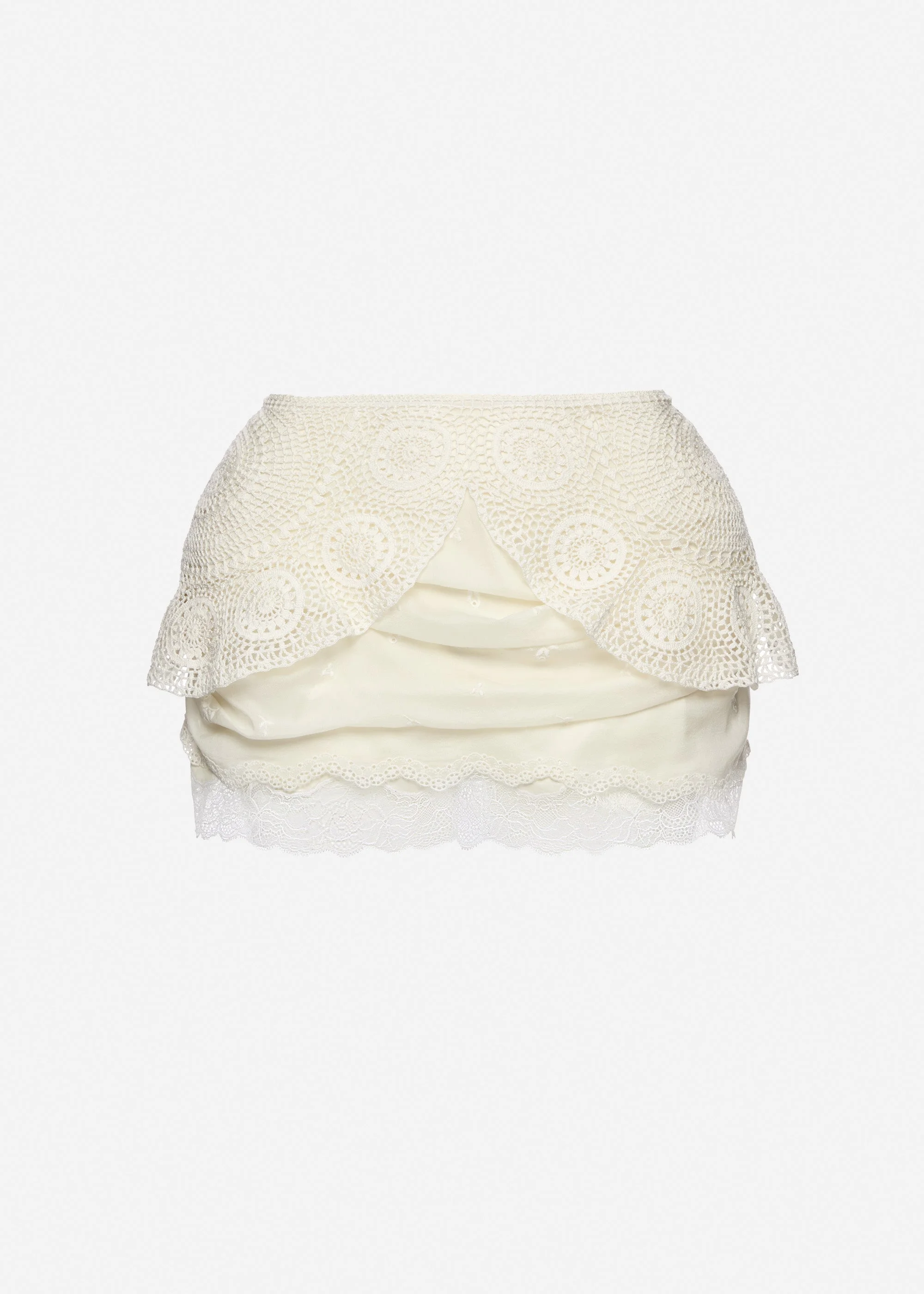 Layered crochet mini skirt in white