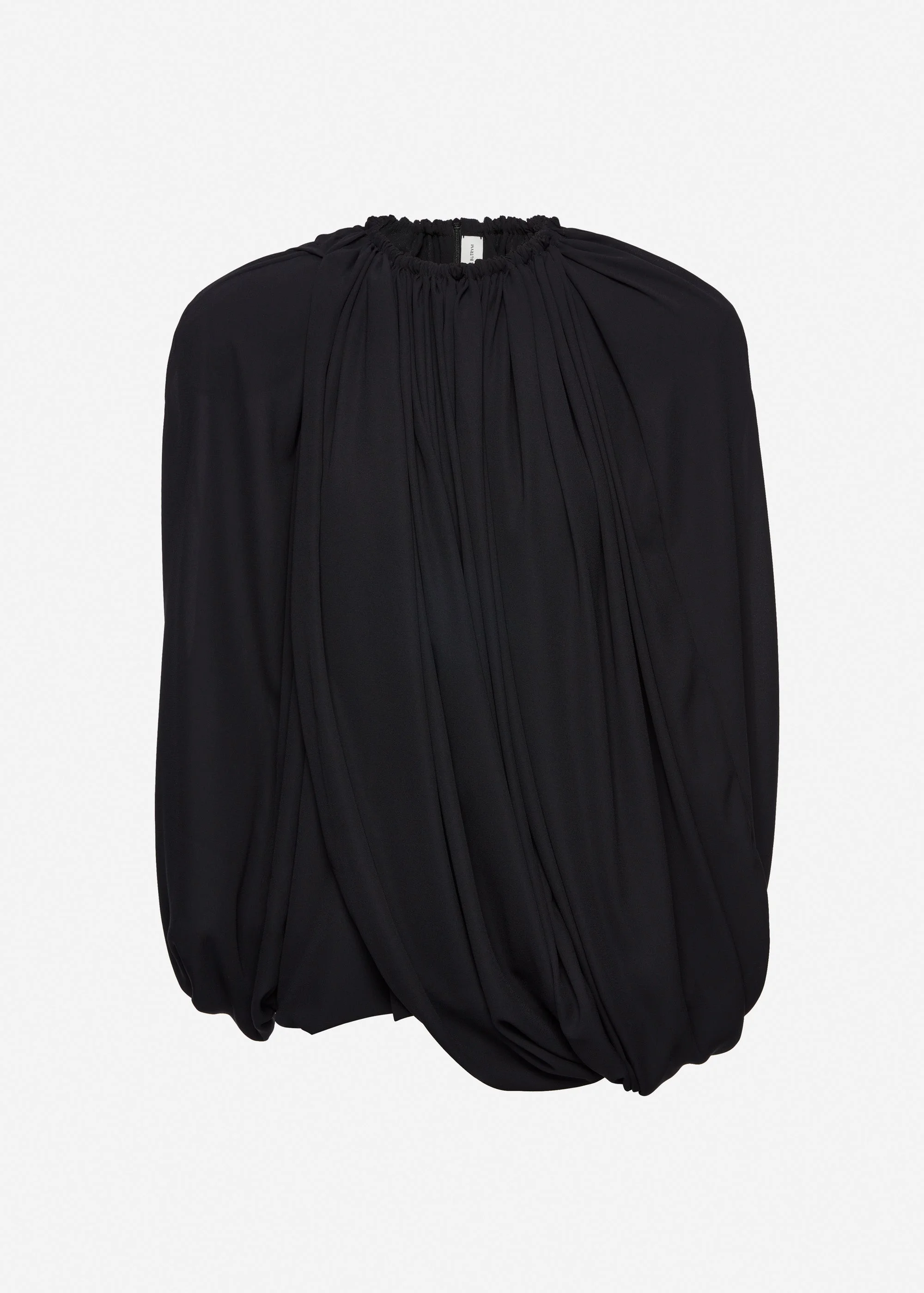 Pre-order: expected to ship by March 30th 2026 A mini dress designed in a layered cape silhouette. Featuring a gathered neckline with elastic finish, padded raglan shoulders for volume, and a fluid drape that tapers softly at the hem. Secures at the back with a concealed zip closure. Details ID: 306526 Shell 100% Polyester Sizing This piece fits true to size. We recommend you get your regular size.