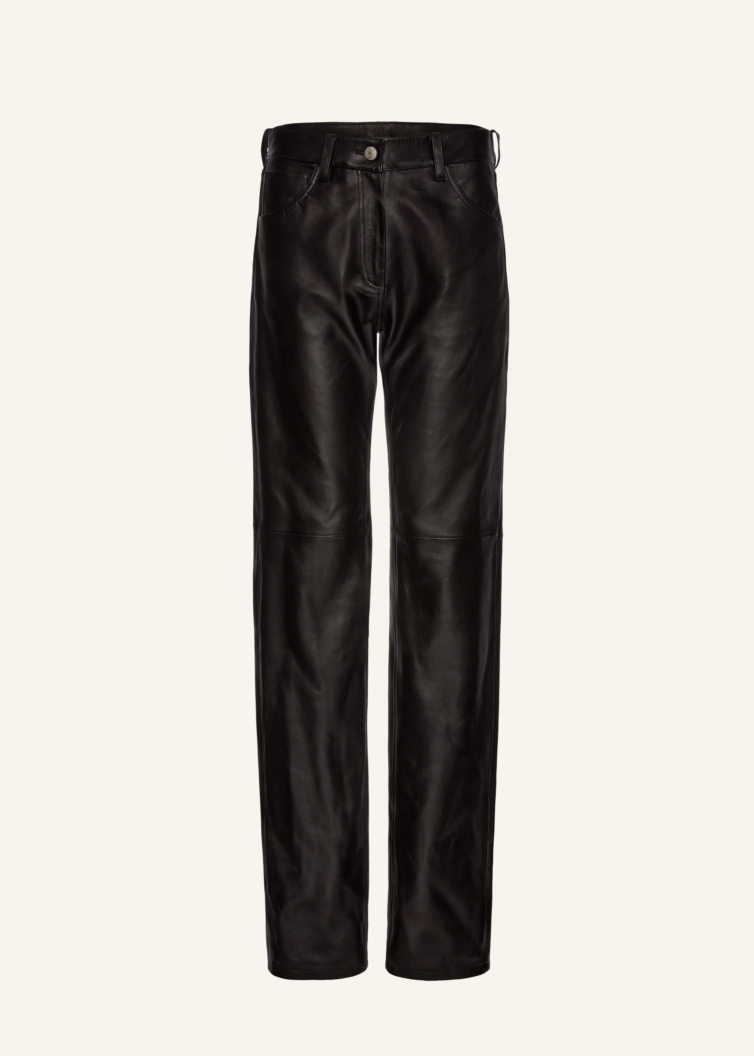 Classic leather pants with a straight-leg. Details ID: 211725 Shell 100% Sheep Leather. Lining 100% Viscose. Sizing This piece fits true to size. We recommend you get your regular size. Model is 180 cm and is wearing a size 34.