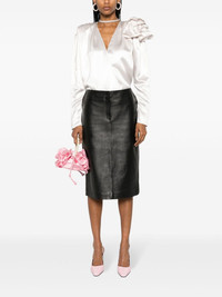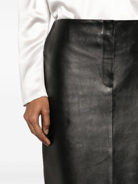 leather pencil skirt Highlights - Black - Sheepskin - Seam detailing - Low-rise - Two side slit pockets - Dart detailing - Central rear vent - Straight hem - Concealed front button, hook and zip fastening Imported Composition Lining: Viscose 100% Outer: Sheepskin 100% SIZE & FIT Model measurements Height 5 ft 11 in(1.8 m) Bust/Chest 31.49 in(80 cm) Hips 35.82 in(91 cm) Waist 24.8 in(63 cm) FittingInformation This midi-length skirt is intended to be worn low on the hips The vented hem offers movement at the rear Soft leather has a supple and smooth construction offering some flexibility This piece fits true to size – take your usual size Washing instructions Specialist Cleaning