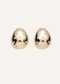 Symmetrical pair of earrings crafted from silver-plated brass and enriched with crystals. They are lightweight and have a chic oblong shape. Details ID: 706525 Hypoallergic Goldplated Brass. Crystals. Sizing Approximate measurements: 2,5cm width, 3cm drop