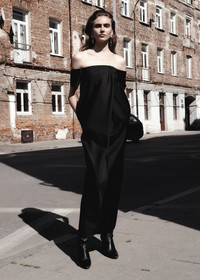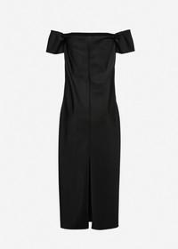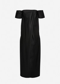 A graceful ankle-length dress cut from a luxurious wool-silk blend with a smooth, fluid drape. The design features a straight neckline supported by an internal corset. The softly draped, off-shoulder sleeves are secured with elastic bands. Subtle darts sculpt the waist and hips, while concealed side-seam pockets add functionality. Closes at the center back with a hidden zipper and a slit below for ease of movement. Details ID: 273426 Shell 58% Wool 42% Silk Sizing This piece has a slim fit. Model is wearing a size 34.
