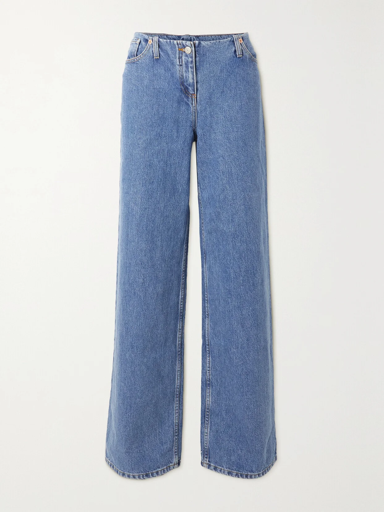 Magda Butrym's jeans are designed with an ultra low-rise waist without topstitching, so they appear streamlined from the front. Designed in a classic blue wash, they have subtle fading along the seams and fall to wide, slouchy legs that pool at the hems. Wear yours with a cropped tank to reveal a flash of skin.