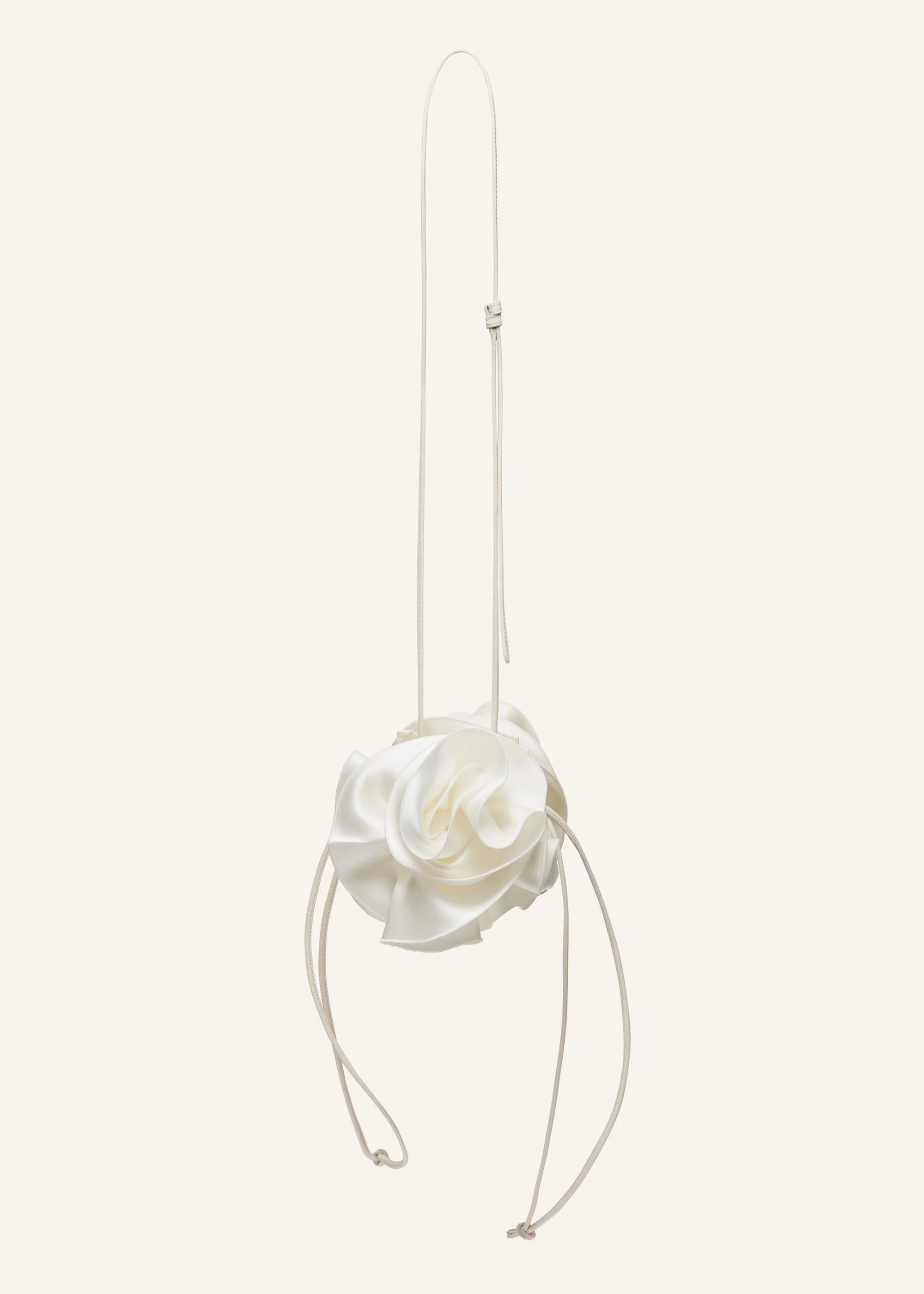 The Magda bag is a mini bucket bag made from satin, adorned with large 3D fabric flowers across the body. Made from satin, these flowers add a signature element of Magda DNA. Details ID: 709523 80% Satin ( 72% Viscose, 28% Silk) Sizing Approximate measurements: 60cm handle lenght, 10cm body height, 15cm depth (at bottom)