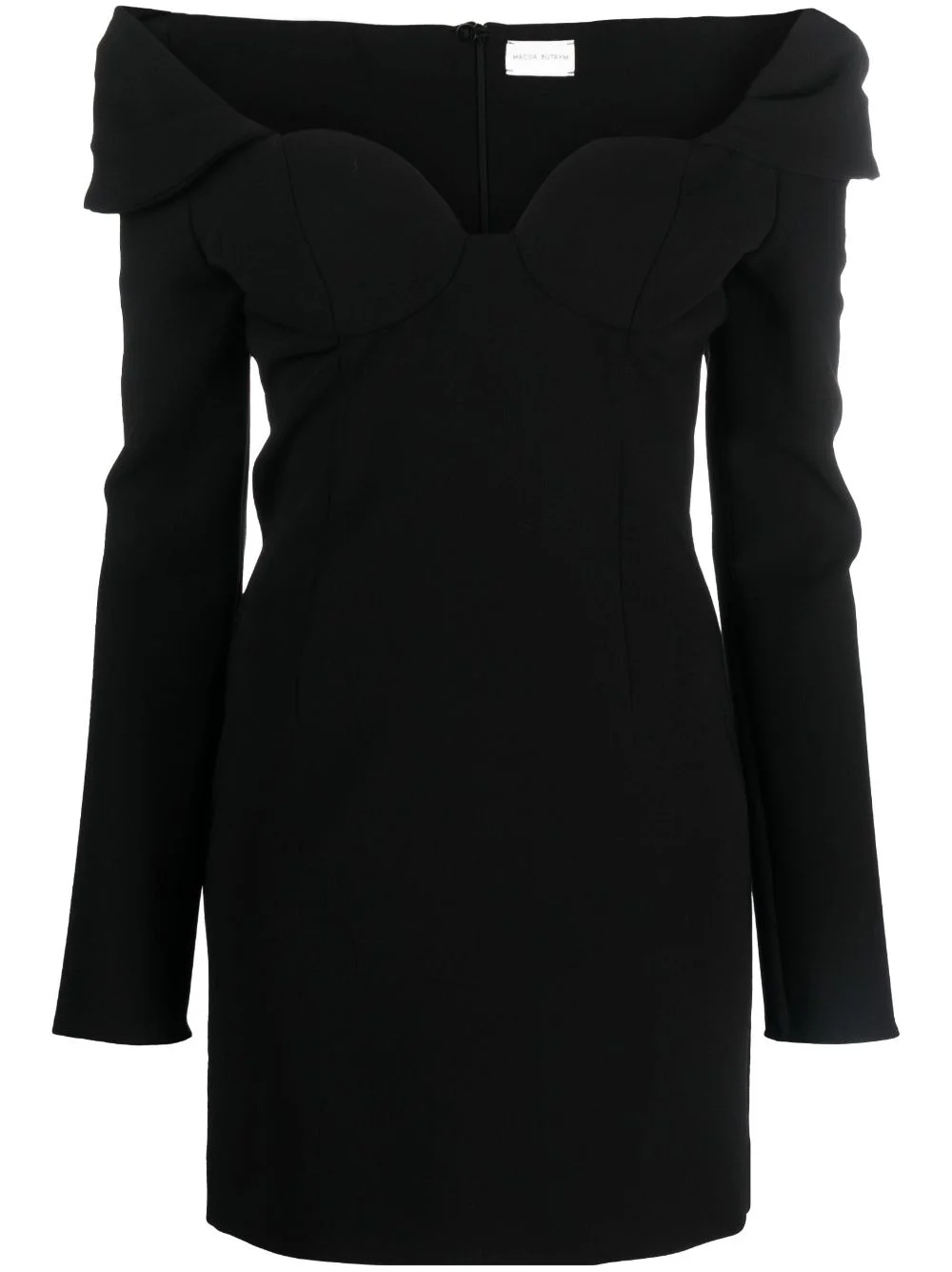 off-shoulder virgin-wool minidress from MAGDA BUTRYM featuring black, virgin wool, stretch-design, off-shoulder, sweetheart neck, concealed rear zip fastening, long sleeves and straight hem. - length: 71.0 centimetres - Color: BLACK - Made in: Poland - Designer Style ID: SUKIENKA 27 BLACK Composition and care Lining Composition Silk: 90.0%, Outer Composition Virgin Wool: 96.0%, Outer Composition Elastane: 4.0%, Lining Composition Elastane: 10.0%