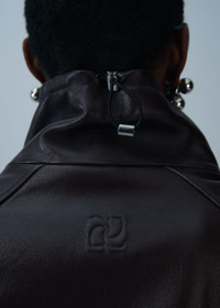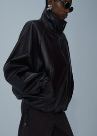 A classic oversized bomber jacket shape with an elasticized hemline to give modernity, and a zip up front closure. Details ID: 133725 Shell 100% Sheep Leather. Lining 100% Viscose. Sizing This piece fits true to size. We recommend you get your regular size. Model is 180 cm and is wearing a size 34.