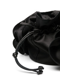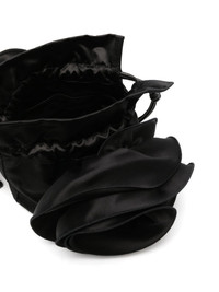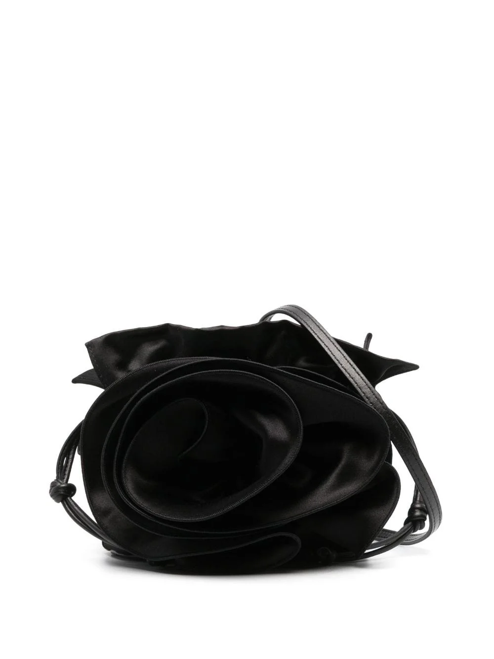 Magda satin flower bucket bag This bucket bag is named after the designer thanks to its 3D floral construction: an element often featured in Magda Butrym's designs. It's crafted from black satin and boasts an adjustable shoulder strap and drawstring closure for ease of wear. Highlights - Black - Satin finish - 3d detailing - Drawstring fastening - Adjustable shoulder strap Made in Italy Composition Outer: Viscose 72%, Silk 28% SIZE & FIT Model measurements Height 5 ft 9 in(1.75 m) Bust/Chest 31.1 in(79 cm) Hips 33.46 in(85 cm) Waist 23.22 in(59 cm) Measurement DEPTH 5.11 in(13 cm) HEIGHT 3.14 in(8 cm) STRAP 25.59 in(65 cm) WIDTH 5.9 in(15 cm)