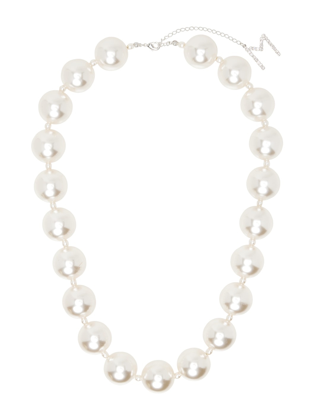 Beaded faux-pearl necklace in white. · Logo charm and crystals at end · Adjustable lobster-clasp fastening · L27.5" Supplier color: White