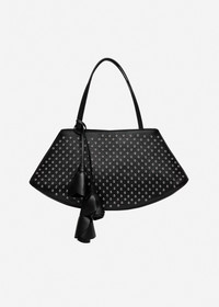 A half-moon crafted from black leather with all-over silver studs. The curved silhouette is framed with sleek black leather handles and adorned with a rose flower charm—a signature Magda Butrym detail. Designed for day-to-night versatility Details ID: 913426 Exterior: 100% Calf Leather, Interior: 100% Calf Leather Sizing Approximate measurements: 22 cm height, 44 cm width, 6 cm depth (at bottom)