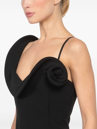floral-applique dress Highlights - Black - Silk blend - Asymmetric design - Floral applique - Rear slit - Rear zip fastening Imported Composition Lining: Silk 96%, Spandex/Elastane 4% Outer: Wool 96%, Spandex/Elastane 4%