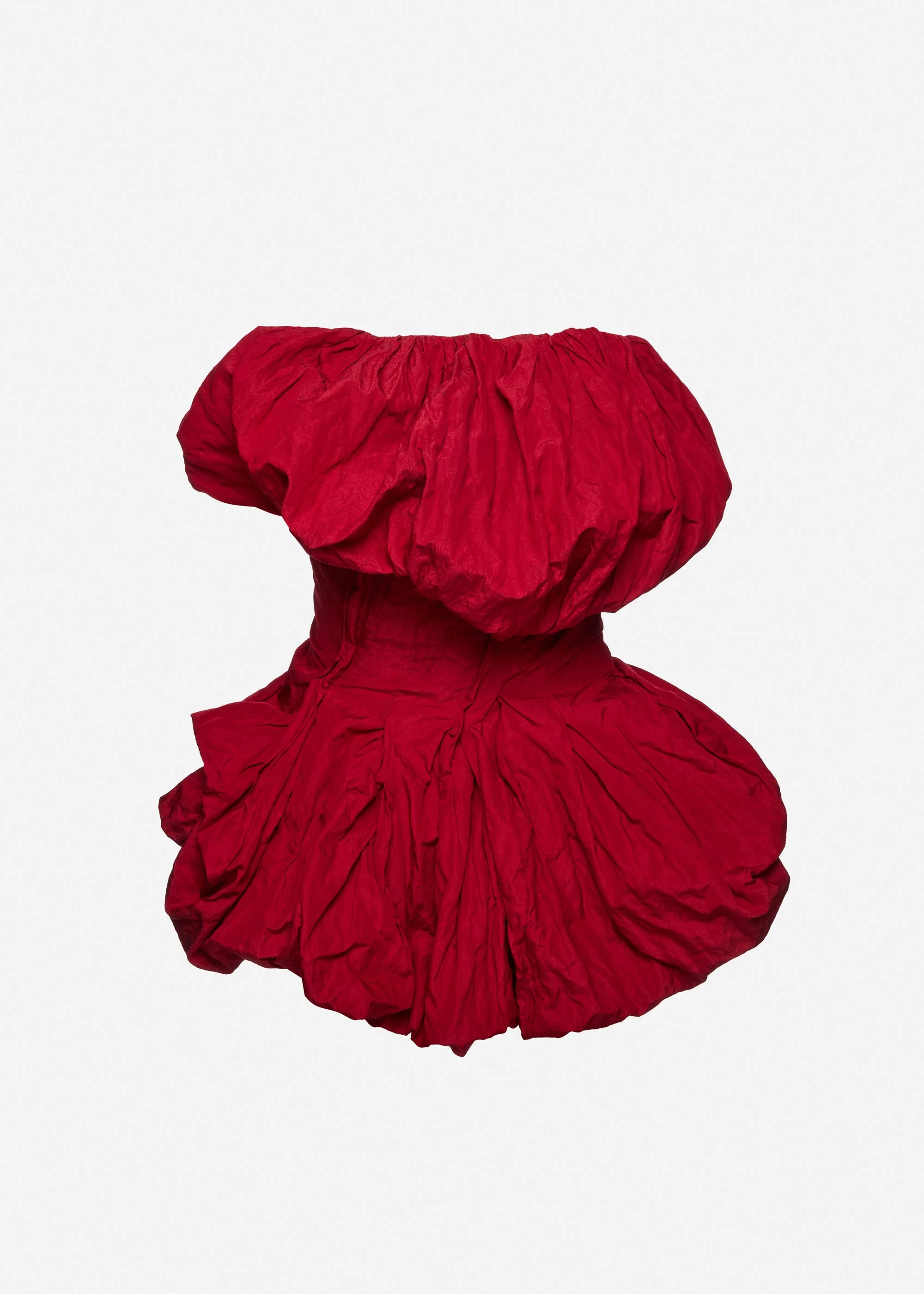 Pre-order: expected to ship by March 30th 2026 A strapless mini dress crafted from crisp taffeta with a sculptural silhouette. The straight neckline and hem are densely gathered and folded inward to create bubble draping. Finished with an internal boned lining for structure, a concealed back zip, and an additional inner waistband for support. Details ID: 287526 Shell 90% Cotton 10% Metal. Lining 100% Silk. Sizing This piece fits true to size. We recommend you get your regular size.