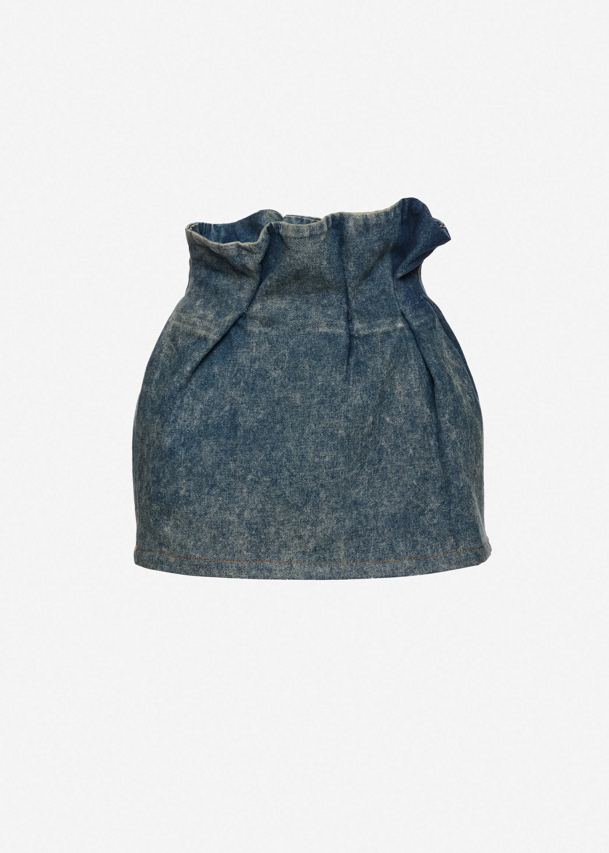 Mini denim skirt with ruffled waist in vintage blue