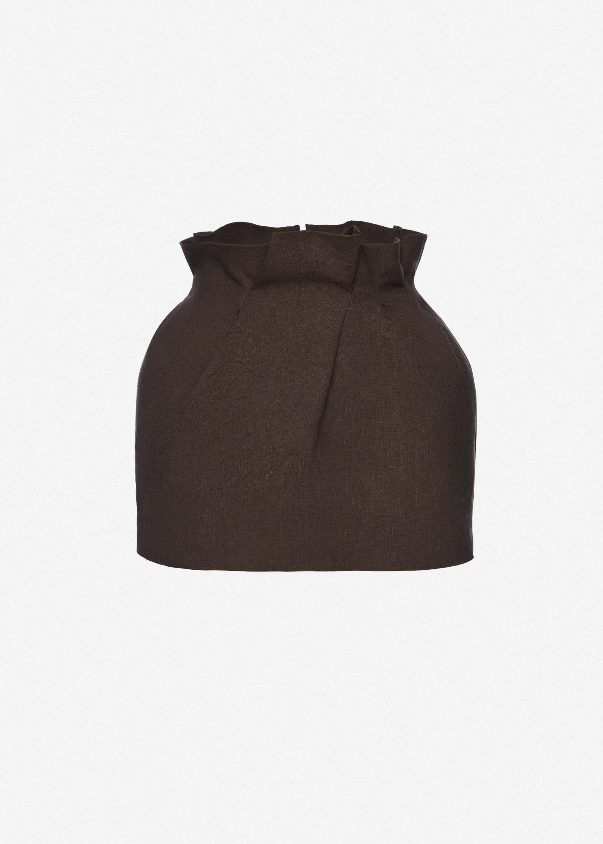 Mini linen skirt with ruffled waist in brown