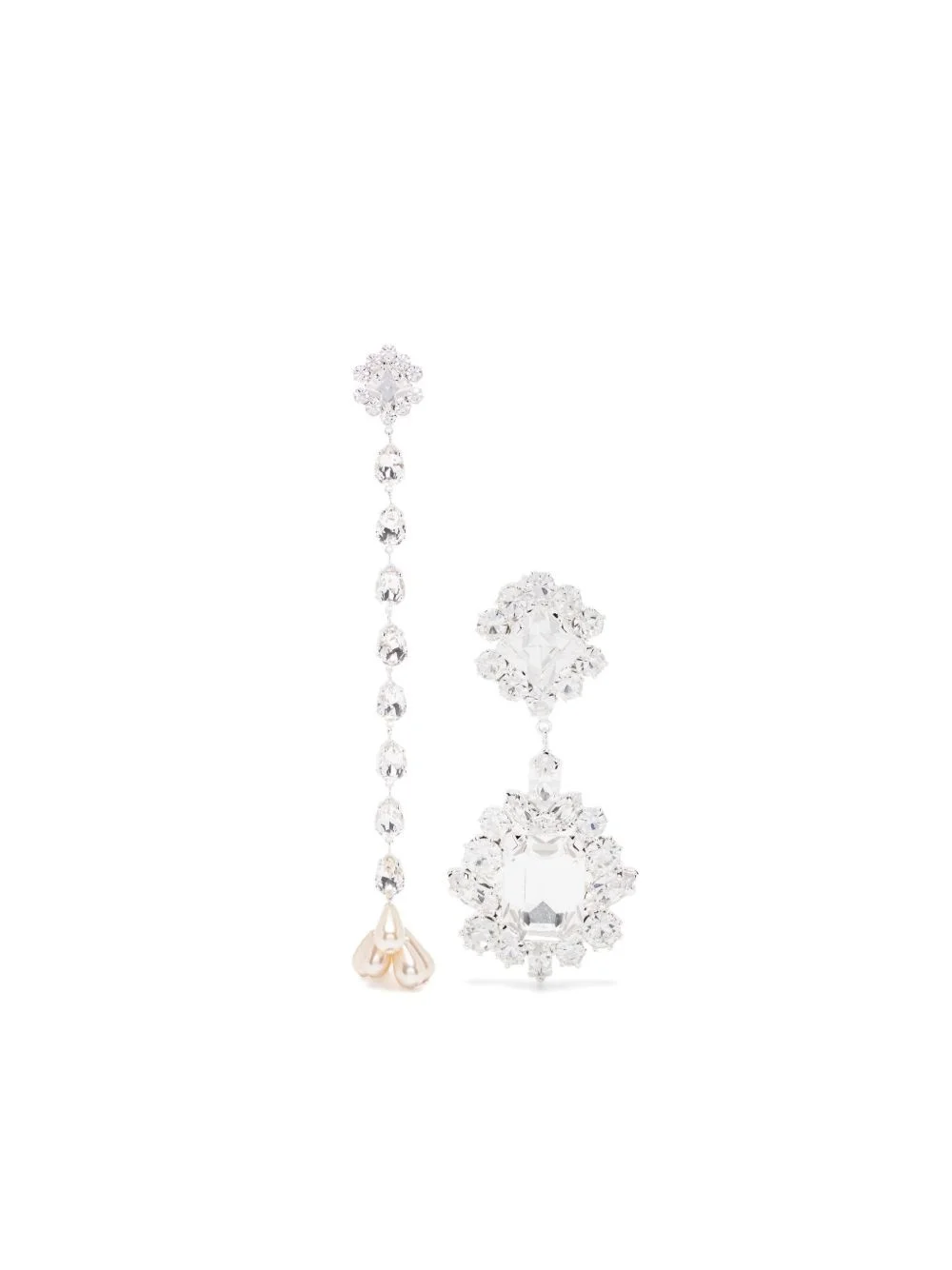 mismatched crystal earrings Highlights - Silver-tone - Butterfly fastening - Faux-pearl detailing - For pierced ears - These earrings come as a pair. Imported SIZE & FIT Model measurements Height 5 ft 11 in(1.8 m) Bust/Chest 32.67 in(83 cm) Hips 36.22 in(92 cm) Waist 24.4 in(62 cm) Measurement HEIGHT 5.9 in(15 cm) Weight (single earring) 14 g(14 g) WIDTH 0.98 in(2.5 cm)