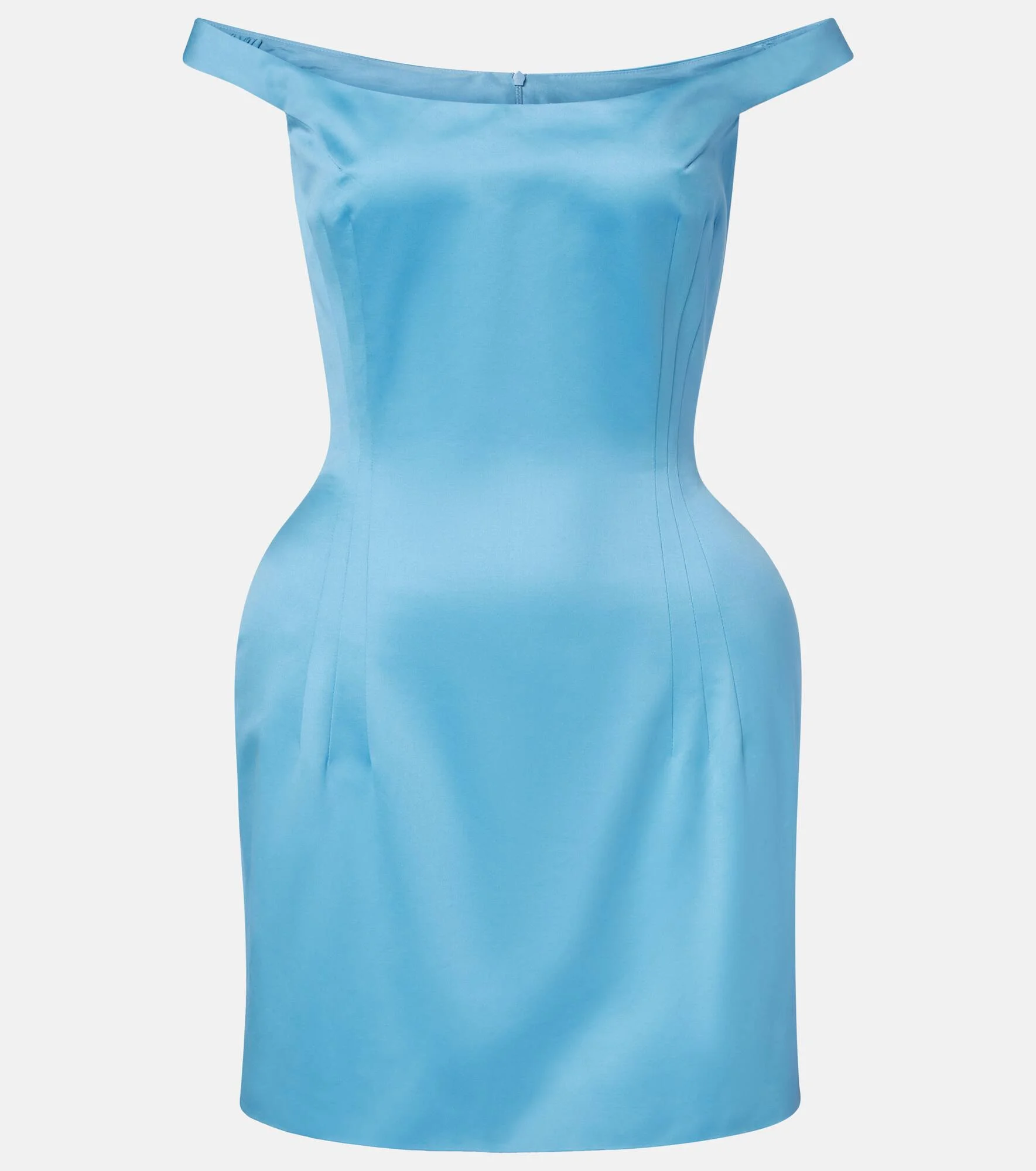 Shaking up the industry with its biting modernity and artisanal excellence, Magda Butrym exists to empower. This minidress is crafted from pure cotton and features a body-contouring silhouette with its off-shoulder and padded hips. Product Details - Material: 100% cotton - Care instructions: dry clean - Made in Poland - Designer color name: Blue - Item color: blue - Lining: 100% silk - Closure: zipped back - Item number: P01066055 Size & Fit - True to size - Off-the-shoulder - Cinched waist - Non-stretchy fabric - The model seen in the picture is 178cm-5'10" and wearing a size FR 36