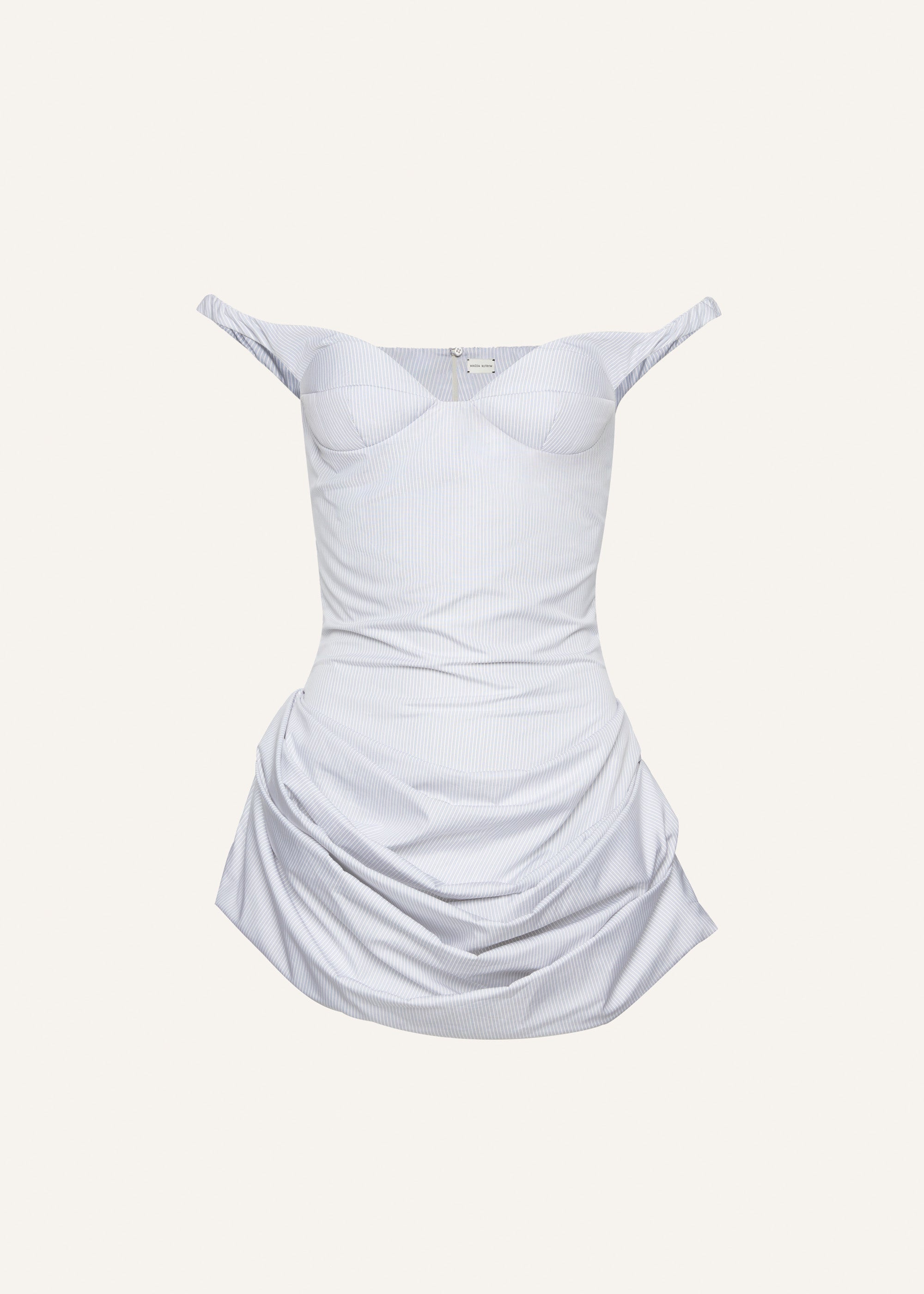 An off shoulder bustier dress with a ruched mini skirt, cut from poplin cotton. Details ID: 242525 Shell 100% Cotton Sizing This piece fits true to size. We recommend you get your regular size. Model is 174 cm and is wearing a size 34.