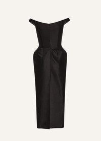 Off-shoulder hip pad midi dress in black