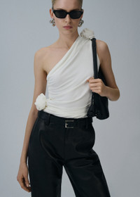 Magda reinvisions the classic tshirt in a totally modern way: a lightweight one shoulder asymmetrical top with ruched detailing and 3D cotton roses. Details ID: 241423 Shell 97% Viscose 3% Elastane Sizing This piece fits true to size. We recommend you get your regular size. Model is 180 cm and is wearing a size 34.