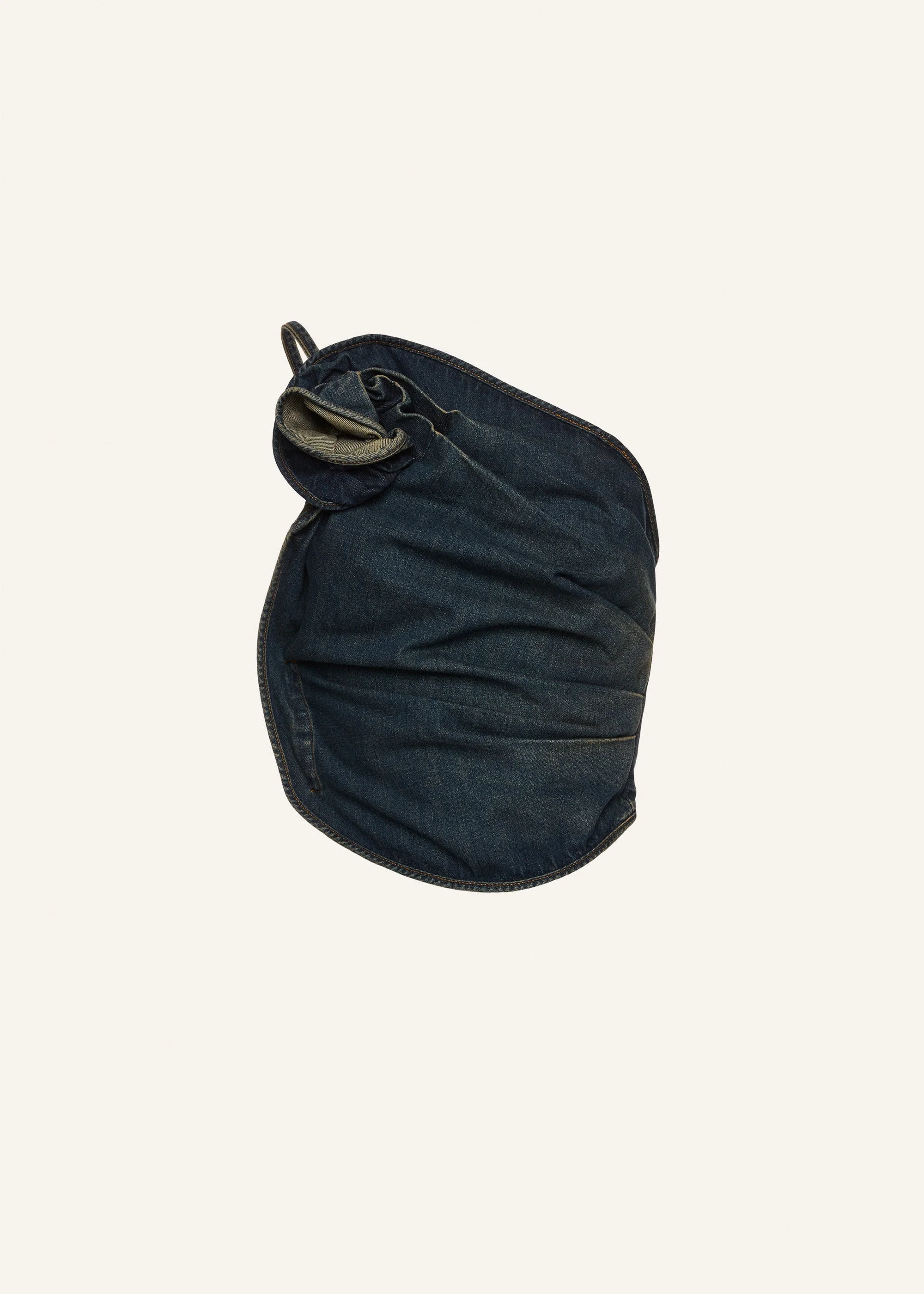 One-shoulder draped denim top in dark vintage blue