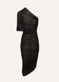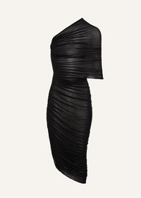 One shoulder draped midi dress in black