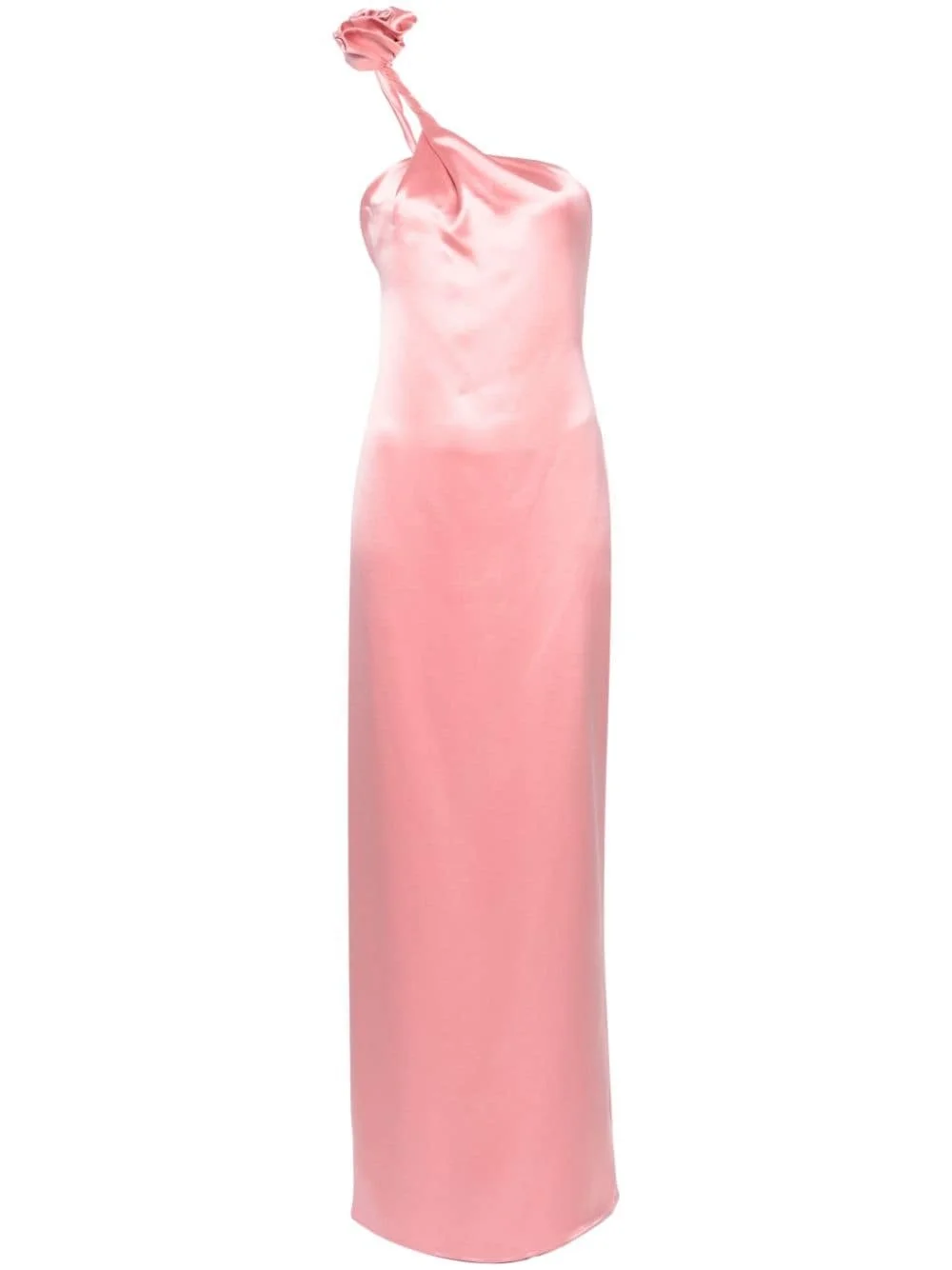 one-shoulder silk maxi dress Highlights - Light pink - Silk - Satin finish - Floral applique - One-shoulder - Asymmetric neck - Sleeveless - Rear slit - Straight hem - Ankle-length Imported Composition Silk 100% SIZE & FIT Model measurements Height 5 ft 11 in(1.8 m) Bust/Chest 33.07 in(84 cm) Hips 37.4 in(95 cm) Waist 25.19 in(64 cm) FittingInformation Designed for a slim fit that sits just away from the body offering a close yet comfortable fit The vented hem offers movement at the rear Made from a midweight non-stretch fabric This piece fits true to size – take your usual size Measurement HIPS 36.22 in(92 cm) LENGTH 50 in(127 cm) WAIST 27.55 in(70 cm) BUST 33.85 in(86 cm)