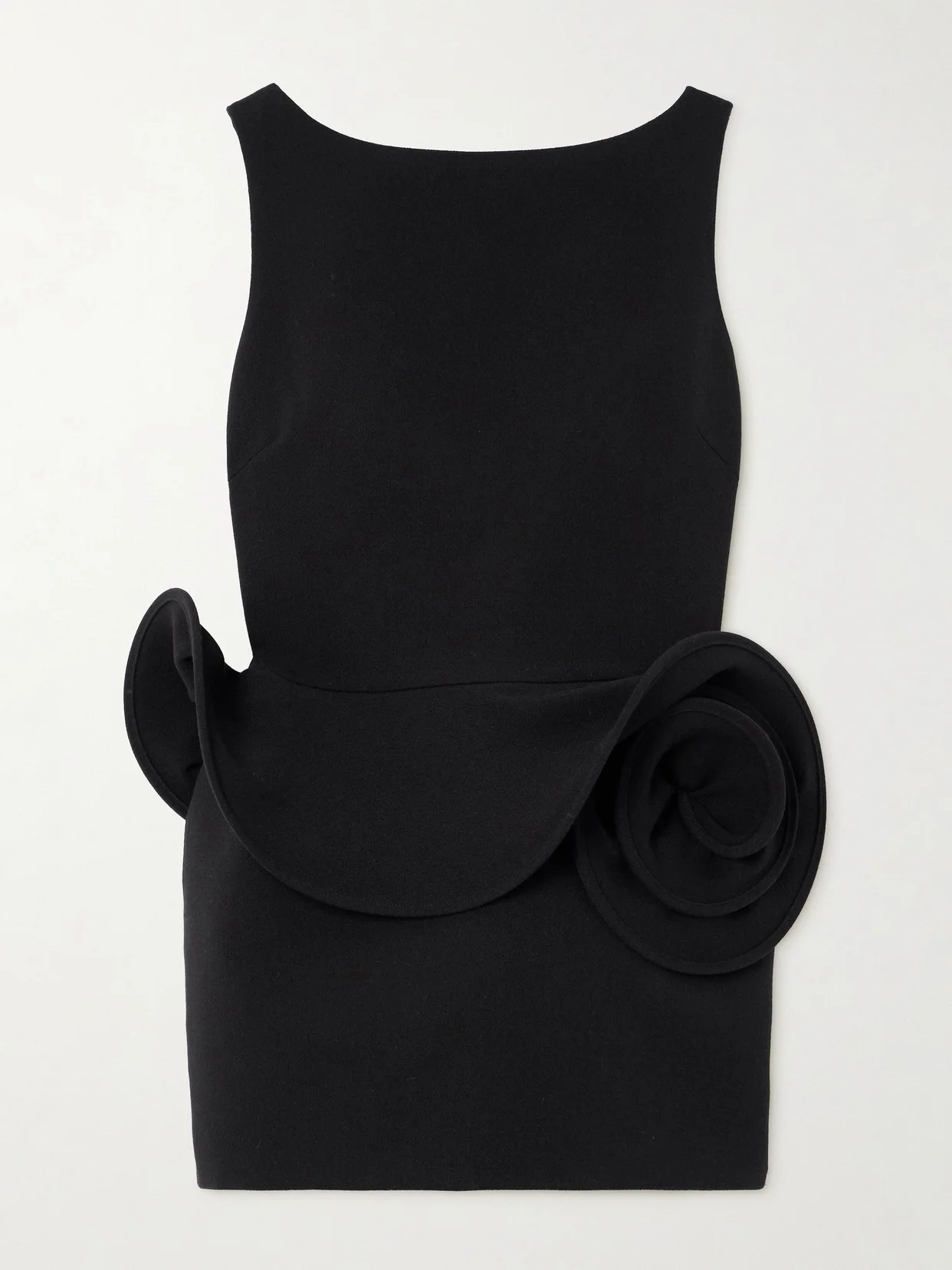 Magda Butrym puts an artful twist on the LBD, embellishing this mini crepe style with sculptural tiers for a statement silhouette. It's finished with an elegant boat neckline and low scooped back.