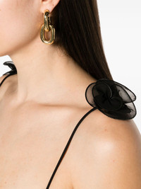 floral-appliqué bustier-style midi dress