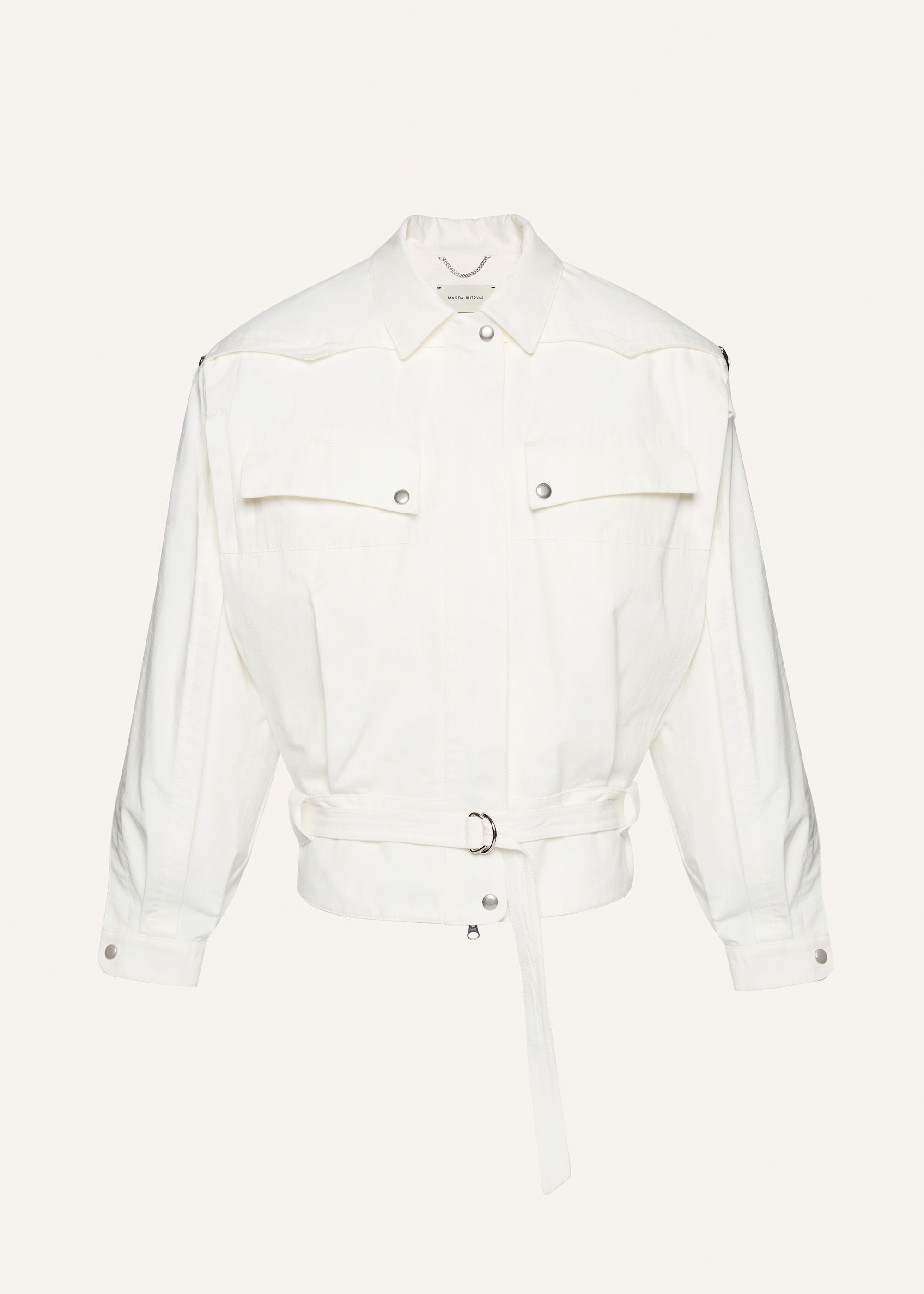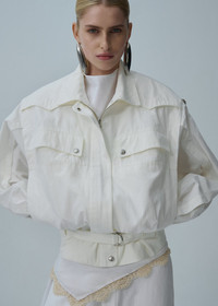 Made from lightweight Japanese cotton, this oversized jacket has technical snap metal hardware, two front pockets, zip front and a fabric belt at the waist. Details ID: 125525 Shell 100% Cotton Sizing This piece fits true to size. We recommend you get your regular size. Model is 182 cm and is wearing a size 34.