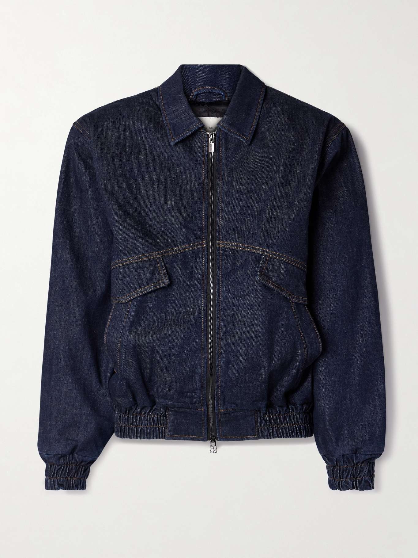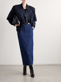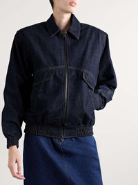 Magda Butrym's jacket is designed in a retro-inspired bomber silhouette - it even has detachable shoulder pads that feel distinctly '80s. Cut from dark-blue denim, it has a relaxed shape that cinches with an elasticated hem. The satin lining ensures smooth layering. Size & Fit - Fits true to size, take your normal size - Intended for a slightly loose fit - Ribbed hem - Mid-weight, non-stretchy denim - Model is 180cm/ 5'11" and is wearing a FR 36 Model measurements: - Bust: 73.5cm/ 29" - Waist: 61cm/ 24" - Hip: 90cm/ 35.5" Details & Care - Dark-blue denim - Two-way zip fastening through front - 100% cotton; lining: 100% silk - Dry clean