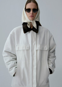 A structured oversized denim jacket with a modern boxy silhouette, featuring a plush faux fur collar for a seasonal update. Designed with front flap pockets, a concealed button placket it merges utilitarian style with soft luxury. Details ID: 122925 Shell 100% Cotton. Sizing This piece fits true to size. We recommend you get your regular size. Model is 177 cm and is wearing a size 34.