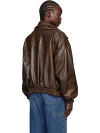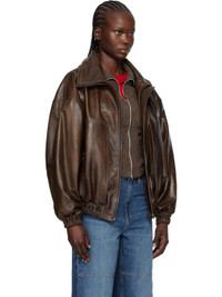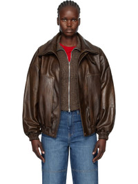 Grained sheepskin jacket. · Press-stud strap at funnel neck · Zip closure with press-stud placket · Welt pockets at front · Elasticized hem and cuffs · Logo embossed at back · Welt pocket at interior · Full satin lining Supplier color: Brown Body: 100% sheepskin. Lining: 100% viscose. Made in Poland 252533F064002