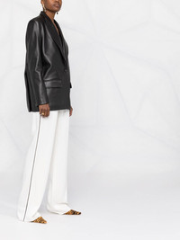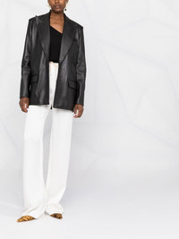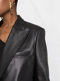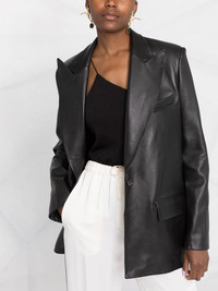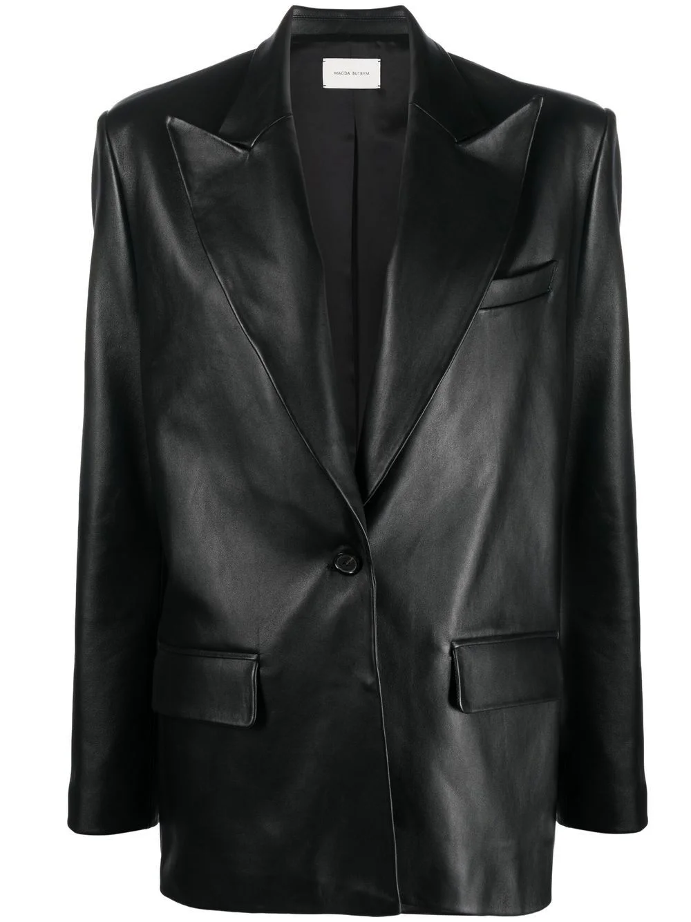 oversized leather blazer Magda Butrym presents a modern alternative to the tailored blazer with this oversized iteration. It is crafted from smooth leather and features wide peak lapels for an added bolded touch. Imported Composition Outer: Sheepskin 100% Lining: Viscose 100% SIZE & FIT Model measurements Height 5 ft 11 in(1.8 m) Bust/Chest 31.49 in(80 cm) Hips 36.61 in(93 cm) Waist 24.4 in(62 cm) FittingInformation This piece fits true to size. We recommend you get your regular size Cut for a loose fit Made with a mid-weight non-stretch fabric Washing instructions Specialist Cleaning