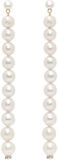 Pair of drop earrings in white. · Freshwater pearls at face and drop · Crystal-cut detailing at drop · Post-stud fastening · H5" x W0.5" Supplier color: White