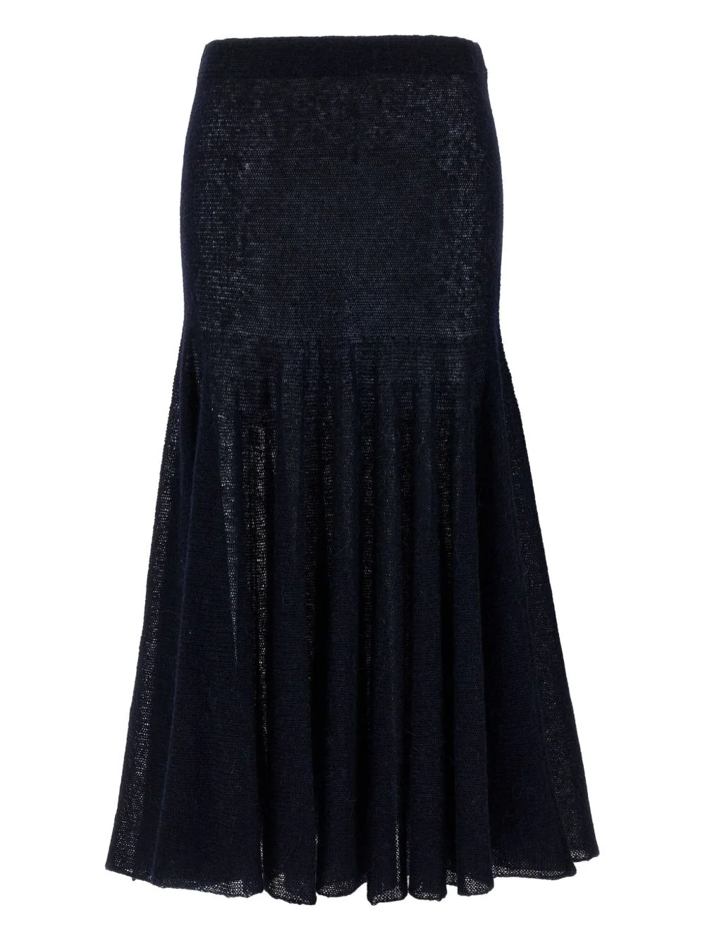 elastic-waistband flared midi skirt Highlights - Navy blue - Elastic waistband - Flared hem - Midi length Imported Composition Alpaca 70%, Polyester 30% Washing instructions Read Manufacturer Guidelines