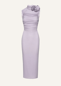 Ruched mock neck midi dress in lilac