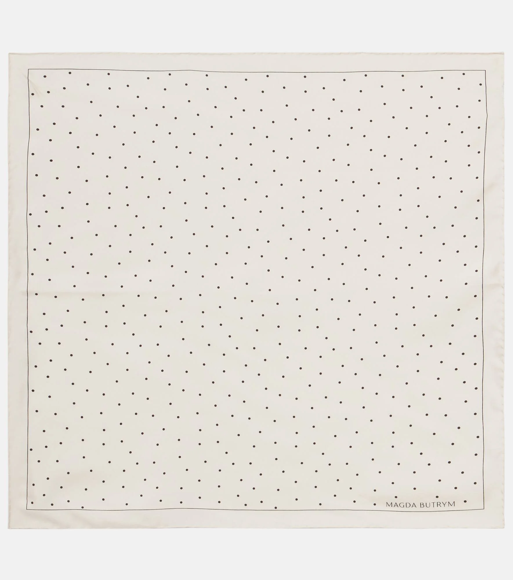 Give your outfits a playful flair with a scarf from Magda Butrym featuring whimsical polka dots. Made in Italy, the piece is crafted from pure silk. Product Details - Material: 100% silk - Care instructions: dry clean - Made in Italy - Designer color name: Cream - Item color: beige, black - Item number: P01057110 Size & Fit - Length 66cm-26" - Width 66cm-26"
