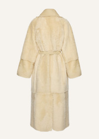 Reversible shearling wrap coat in cream