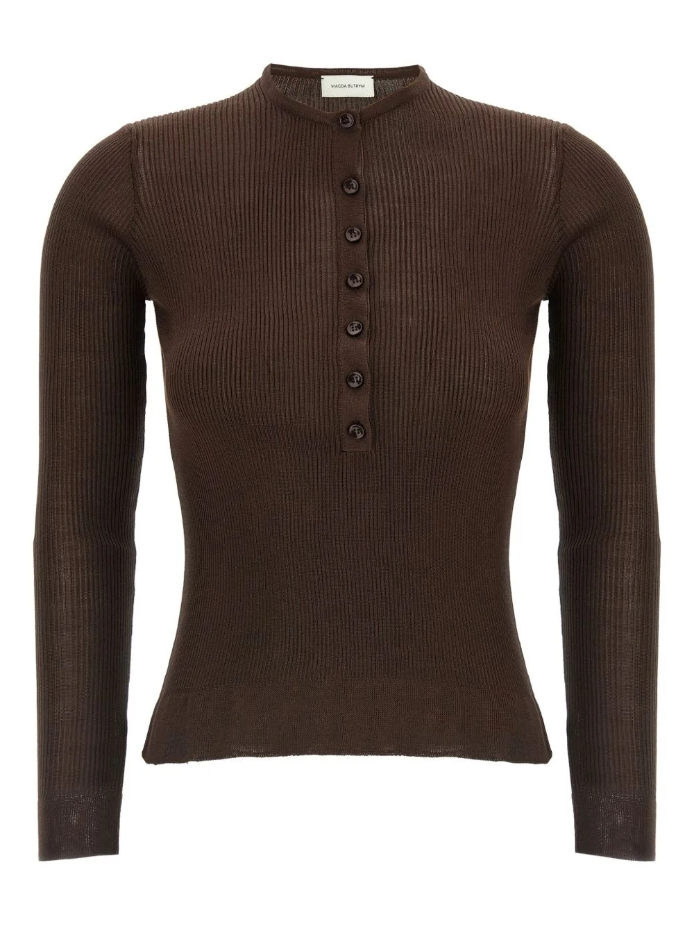 ribbed silk sweater Highlights - Brown - Ribbed texture - Short front button closure - Crew neck - Long sleeves Made in Italy Composition Silk 100% Washing instructions Read Manufacturer Guidelines