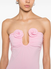 floral-appliqué strapless dress