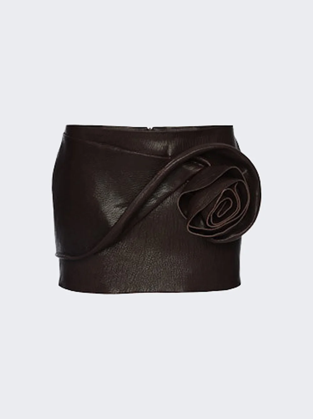 Rose Detail Leather Mini Skirt Brown