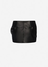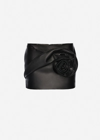 Rose-detail leather mini skirt in black
