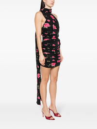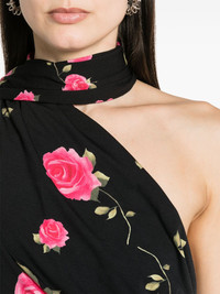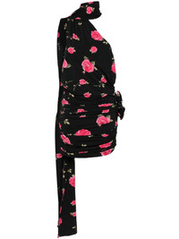 rose-print ruched minidress Highlights - Black/pink - Stretch-jersey - All-over rose print - Floral applique - Draped design - Ruched detailing - Attached scarf - Asymmetric neck - Sleeveless - Concealed rear zip fastening - Straight hem - Thigh-length - Unlined Imported Composition Outer: Polyamide 87%, Elastane 13% SIZE & FIT Model measurements Height 5 ft 11 in(1.8 m) Bust/Chest 33.07 in(84 cm) Hips 37.4 in(95 cm) Waist 25.19 in(64 cm) FittingInformation Designed for a close fit throughout Made from a midweight stretch fabric, this piece offers elasticity and flexibility when worn This piece fits true to size – take your usual size