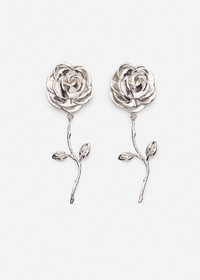 Rose stem earrings in silver