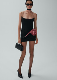 Black bustier mini dress with a contrasting pink floral applique at the hip, enhancing Magda’s two-tone aesthetic. Details ID: 157425 Shell 74% Viscose 22% Polyamide 4% Elastane. Lining 90% Silk 10% Elastane.100% Polyamide. Sizing This piece fits true to size. We recommend you get your regular size. Model is 180 cm and is wearing a size 34.