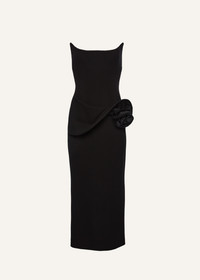 Floral appliqué bustier midi dress in black