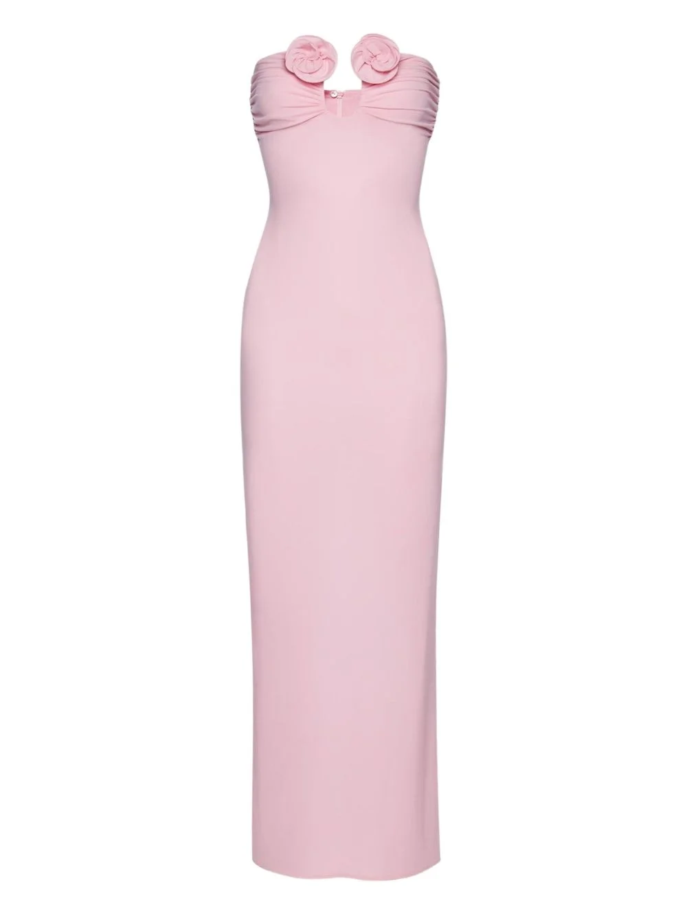 rosettes ruched maxi dress Highlights - Pink - Rosettes detail - Strapless - Ruched detail - Back slit - Concealed back zip fastening Imported Composition Polyester 87%, Spandex/Elastane 13% Washing instructions Dry Clean Only