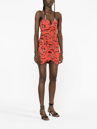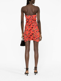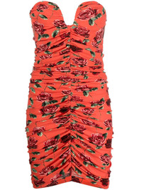 rose-print ruched bustier minidress Rose motifs are an integral part of Magda Butrym's romantic aesthetic, as shown by this scarlet minidress. Its bustier silhouette, another signature of the brand, is ruched to add depth and texture to the blooming print while the structural U-neck lends sculptural detail. Highlights - Scarlet - All-over rose print - Ruched detailing - Bustier-style neckline - U-neck - Concealed rear zip fastening - Strapless - High-low hem - Thigh-length Imported Composition Outer: Viscose 92%, Elastane 8% Lining: Silk 100% SIZE & FIT Model measurements Height 5 ft 10 in(1.79 m) Bust/Chest 31.1 in(79 cm) Hips 35.03 in(89 cm) Waist 24.01 in(61 cm) Measurement CHEST 28.34 in(72 cm) HIPS 32.28 in(82 cm) LENGTH 27.55 in(70 cm) WAIST 25.98 in(66 cm) FittingInformation Designed for a close fit throughout The internal bodice offers support and shape Made from a midweight stretch fabric, this piece offers elasticity and flexibility when worn This piece fits true to size – take your usual size